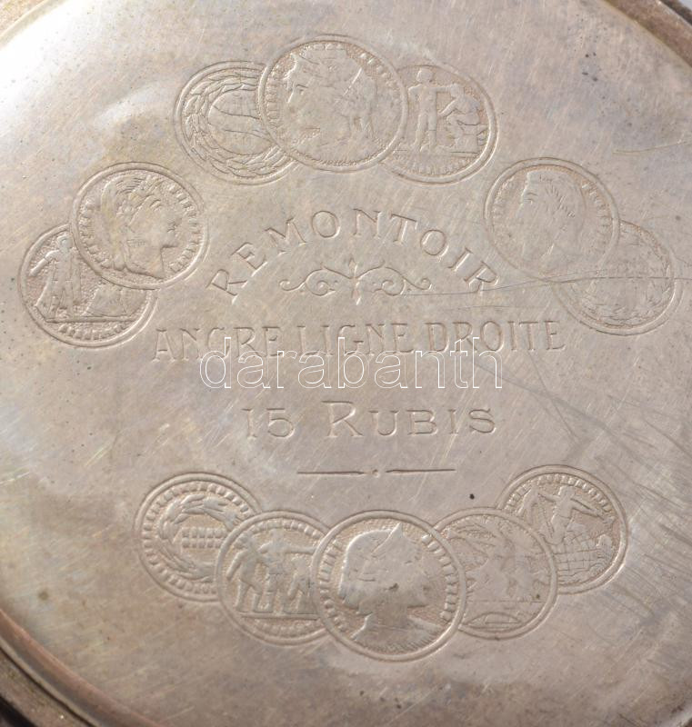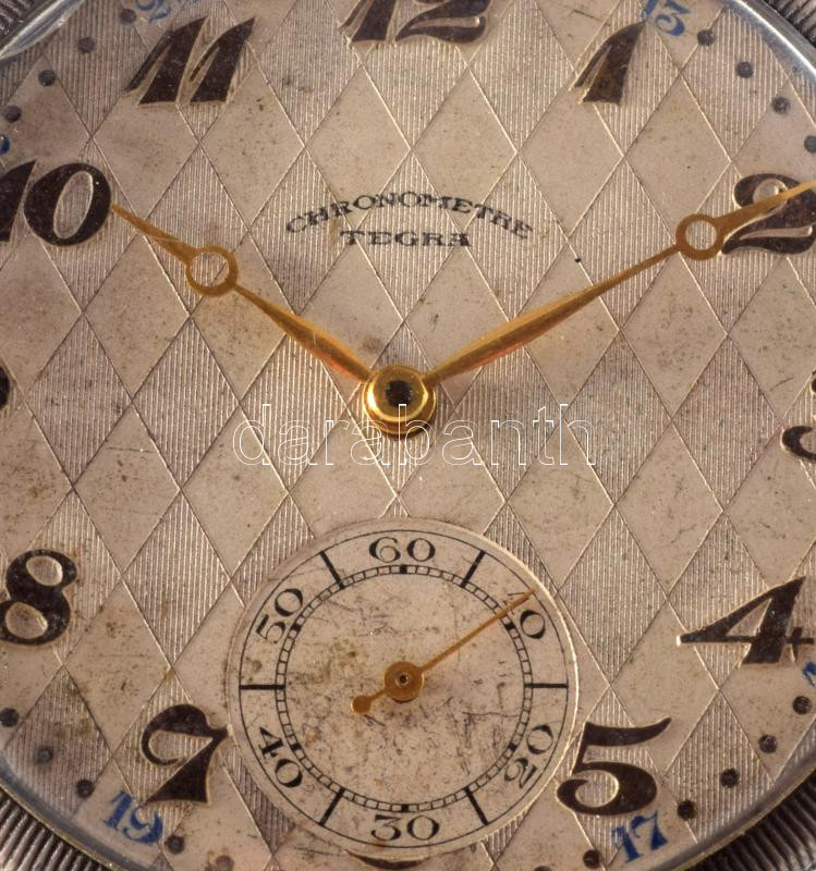 Leírás: Chronometre Tegra svájci ezüst (Ag) zsebóra másodperc segédkörrel, működik, d: 5 cm, bruttó 64g