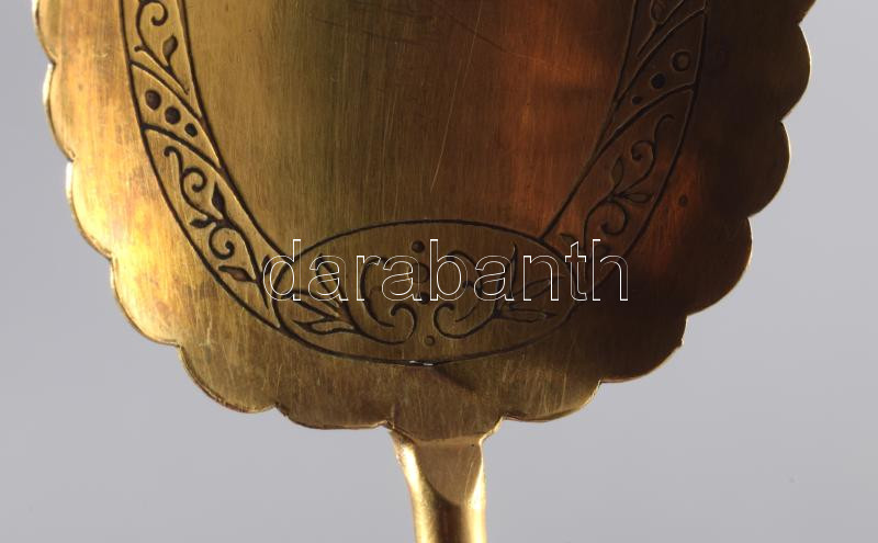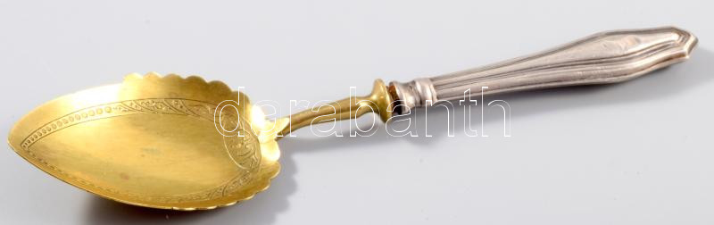 Leírás: Ezüst (Ag) nyelű szervírozókanál, jelzett, h: 17 cm