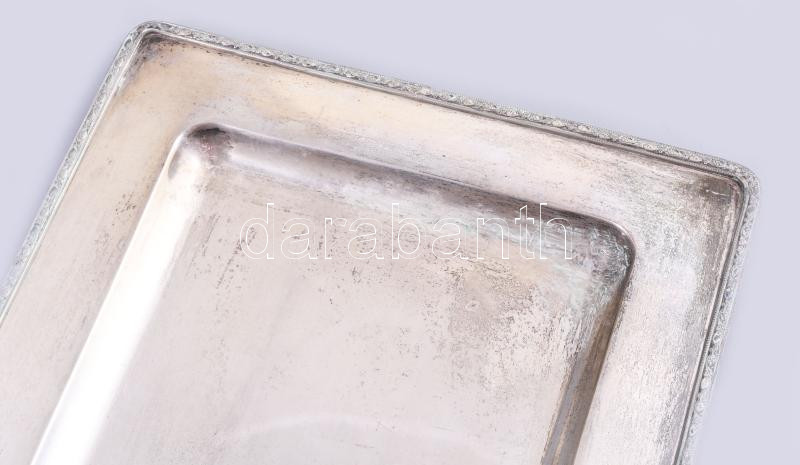 Ezüst (Ag) tálca körbefutó levélmintás peremrésszel, jelzett, 44x18 cm... https://www.darabanth.com/hu/510-Gyorsarveres/510.0/Nemesfem-disztargyak-ekszerek-dragakovek/Nemesfem-disztargyak-ekszerek-dragakovek~1110/Ezust-Ag-talca-korbefuto-levelmintas-peremresszel-jelzett-44x18-cm-netto-726g~II3455609