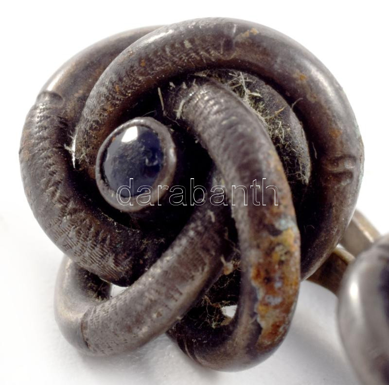 Leírás: Ezüst mandzsetta pár, kék kő berakással, jelzett, bruttó 3,6g