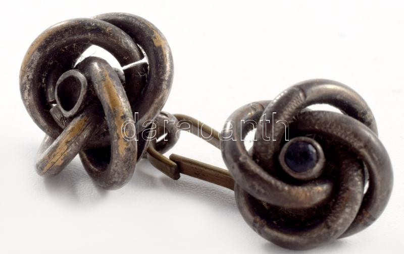 Leírás: Ezüst mandzsetta pár, kék kő berakással, kőhiánnyal, jelzett, bruttó 5,3g