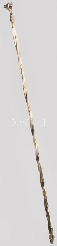 Leírás: Ezüst(Ag) aranyozott kétszálas fonott karkötő, h: 17,5 cm, nettó: 2,6 g