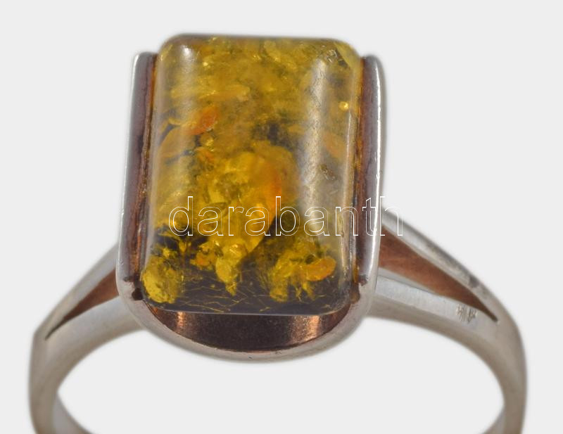 Ezüst(Ag) borostyánköves gyűrű, jelzett, méret: 56, bruttó: 3,7 g https://www.darabanth.com/hu/510-Gyorsarveres/510.0/Nemesfem-disztargyak-ekszerek-dragakovek/Nemesfem-disztargyak-ekszerek-dragakovek~1110/EzustAg-borostyankoves-gyuru-jelzett-meret-56-brutto-3-7-g~II3445917