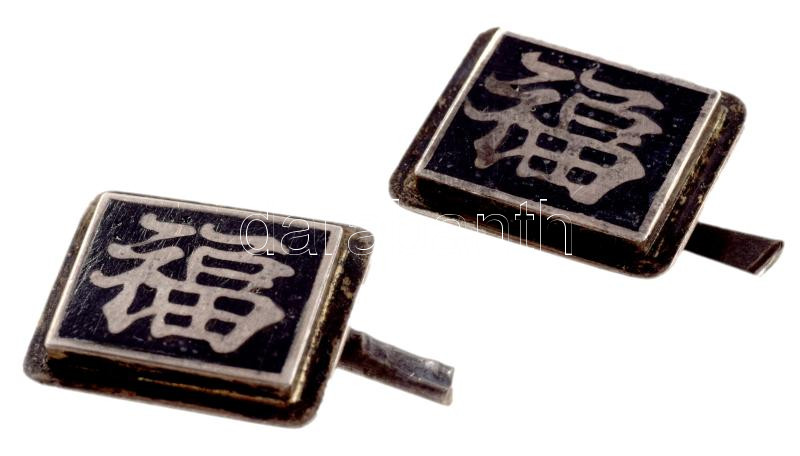 Leírás: Régi vietnámi ezüst (Ag) mandzsetta pár, jelzett, 6,1g