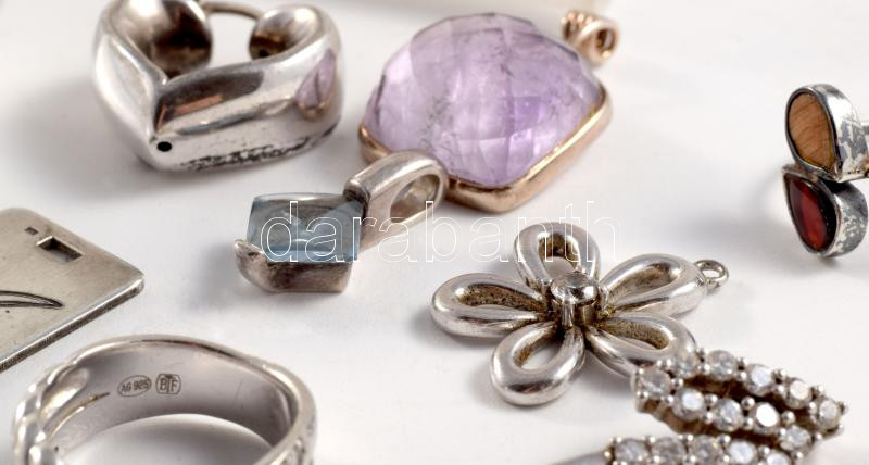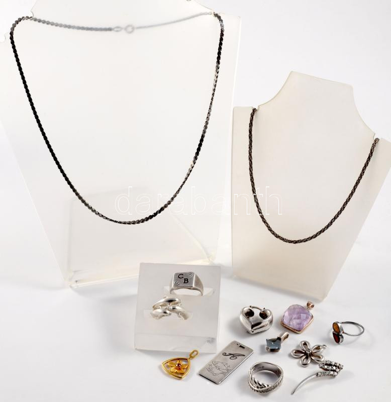 Vegyes ezüst (Ag) ékszer tétel, bruttó 53g https://www.darabanth.com/hu/510-Gyorsarveres/510.0/Nemesfem-disztargyak-ekszerek-dragakovek/Nemesfem-disztargyak-ekszerek-dragakovek~1110/Vegyes-ezust-Ag-ekszer-tetel-brutto-53g~II3448188