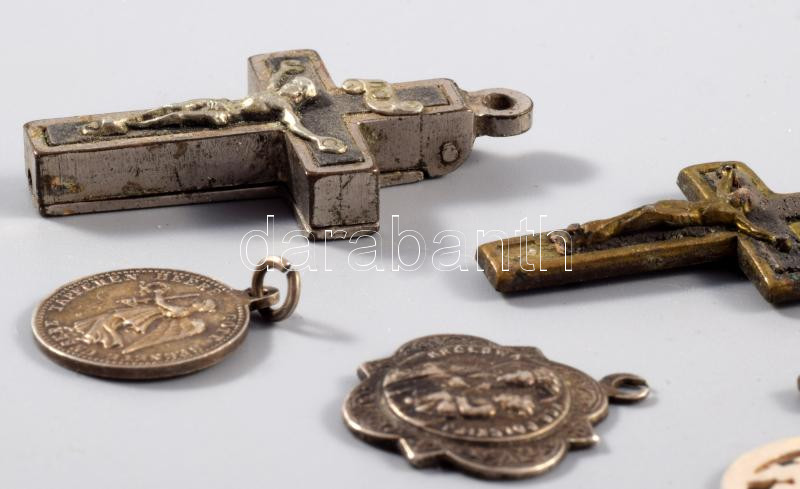 Leírás: Vegyes kegytárgy medál tétel, közte 2 darab ezüst (Ag) medállal.