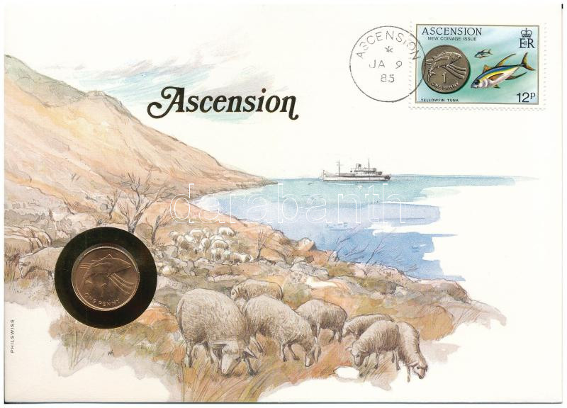 Ascension-sziget 1984. 1p bronz "II. Erzsébet" felbélyegzett borítékban, bélyegzéssel, német nyelvű leírással T:AU patina