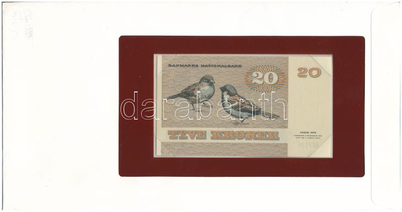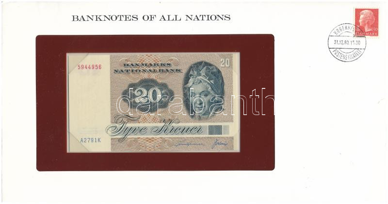 Denmark 1972. 20 Kroner in "Banknotes of all Nations" banknote envelope with stamp and cancellation C:UNC