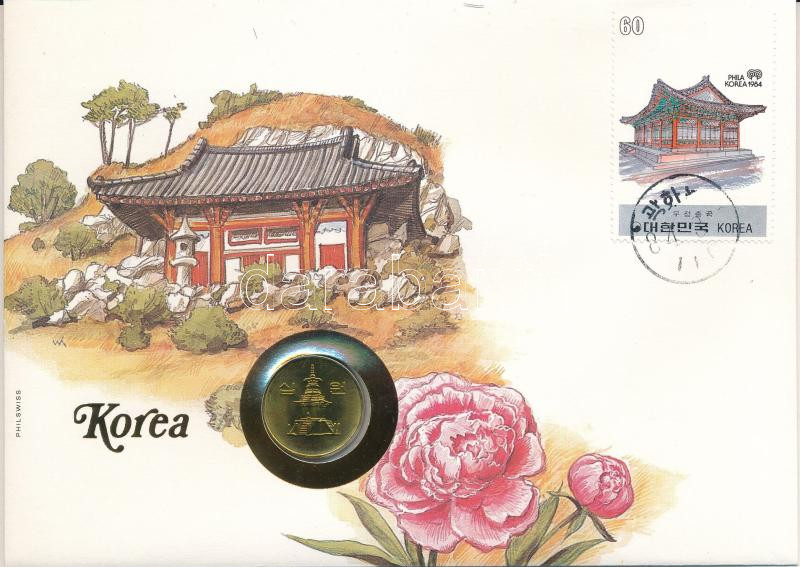 Dél-Korea 1985. 10J felbélyegzett borítékban, bélyegzéssel, német nyelvű leírással T:UNC