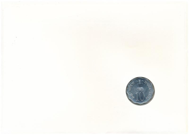 India 1974. 10 Paise in envelope with stamp and cancellation, with German description C:UNC