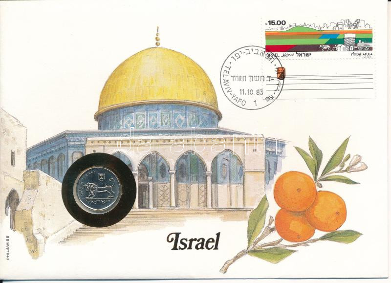 Izrael 1982. 1/2Sh Cu-Ni felbélyegzett borítékban, bélyegzéssel, T:UNC... https://www.darabanth.com/hu/510-Gyorsarveres/510.0/Numizmatika/Ermes-es-bankjegyes-boritekok~688/Izrael-1982-12Sh-Cu-Ni-felbelyegzett-boritekban-belyegzessel-TUNC-Israel-1982-12-Sheqel-~II3141549