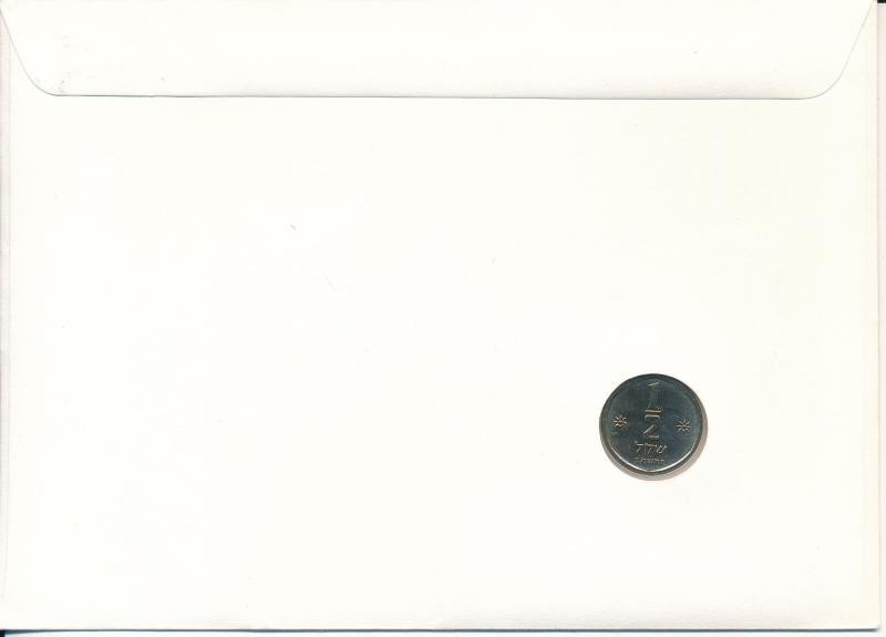 Leírás: Izrael 1982. 1/2Sh Cu-Ni felbélyegzett borítékban, bélyegzéssel, T:UNC Israel 1982. 1/2 Sheqel Cu-Ni in envelope with stamp, and cancellation C:UNC