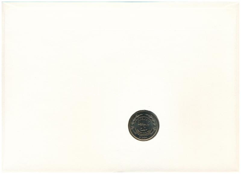 Jordánia 1984. 25f Cu-Ni felbélyegzett borítékban, bélyegzéssel, német nyelvű leírással T:UNC