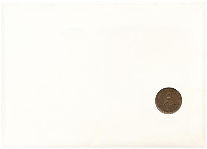Qatar 1978. 5 Dirham in envelope with stamp and cancellation, with German language description C:UNC patina