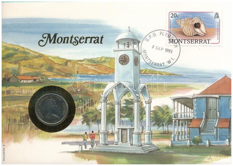 East Caribbean States / Montserrat 1989. 25 Cents Cu-Ni "Elizabeth II" in envelope with stamp and cancellation, with German description C:UNC