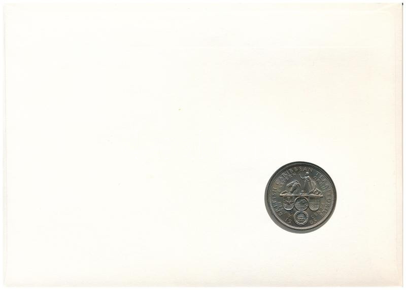 East Caribbean States / Nevis 1965. 50 Cents Cu-Ni "Elizabeth II" in envelope with stamp and cancellation C:UNC