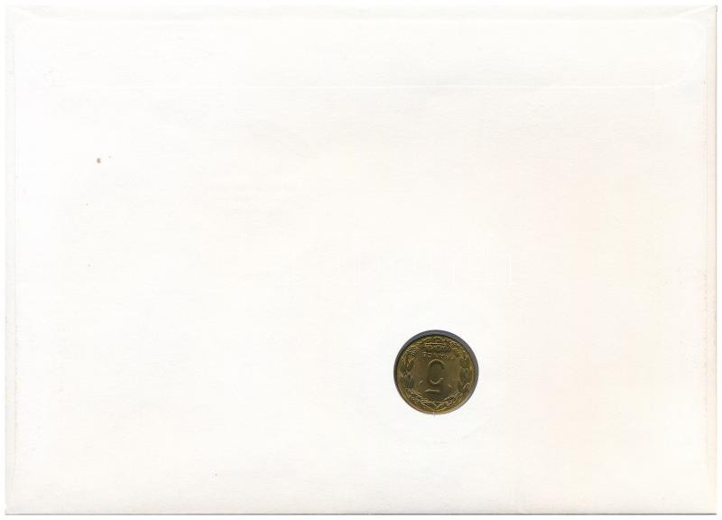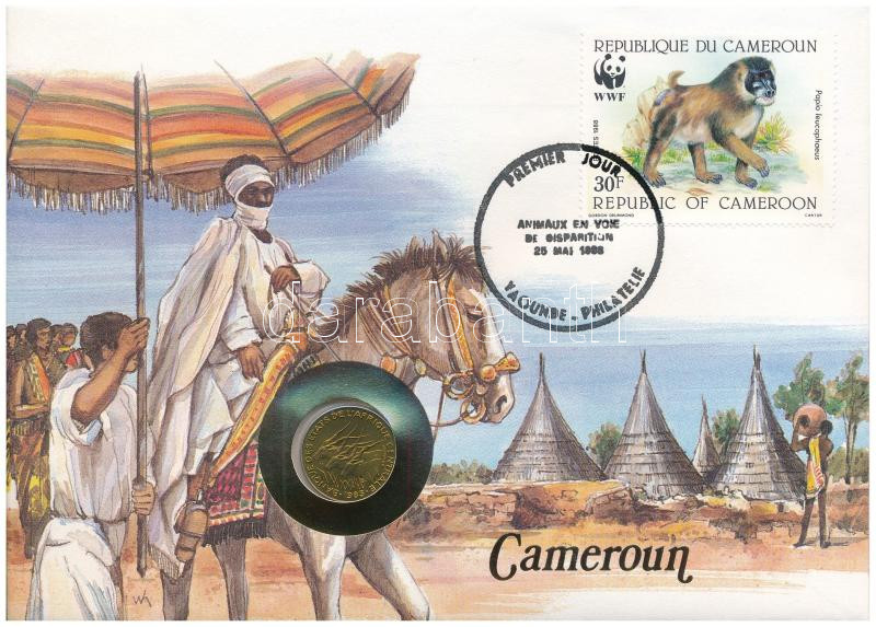 Közép-afrikai Államok 1983. 5Fr Al-bronz "Kamerun" érmés borítékban, Egyenlítői Guinea bélyeggel és bélyegzéssel, német nyelvű leírással T:UNC