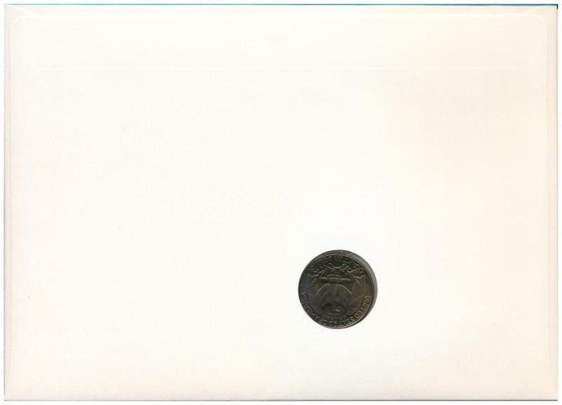 Marshall-szigetek érmés boríték, első napi bélyegzéses bélyeggel, benne Amerikai Egyesült Államok 1990P 25c Cu-Ni , német tájékoztató lappal T:UNC patina