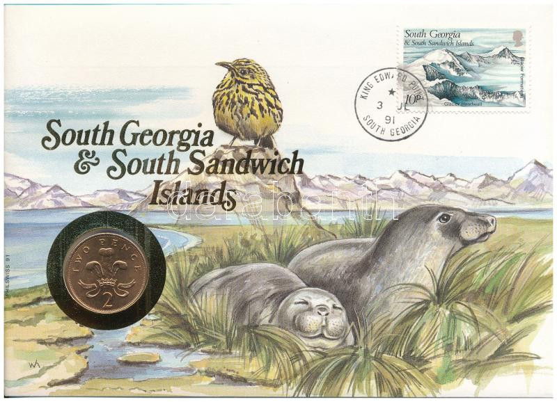 Great Britain / South Georgia & South Sandwich Islands 1990. 2 Pence in envelope with stamp and cancellation, with German description C:UNC