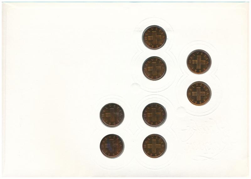 Svájc 1984. 1r bronz (8x) "Szerencselevél - 88.8.8. Heiligkreuz" felbélyegzett borítékon, alkalmi bélyegzővel, német nyelvű leírással T:UNC,AU patina