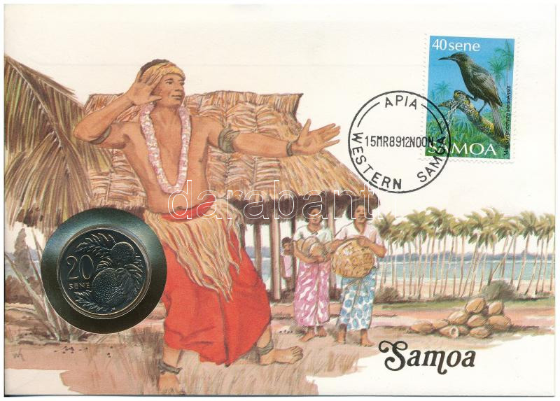 Samoa 1988. 20 Sene Cu-Ni in envelope with stamp, cancellation, with German description C:UNC