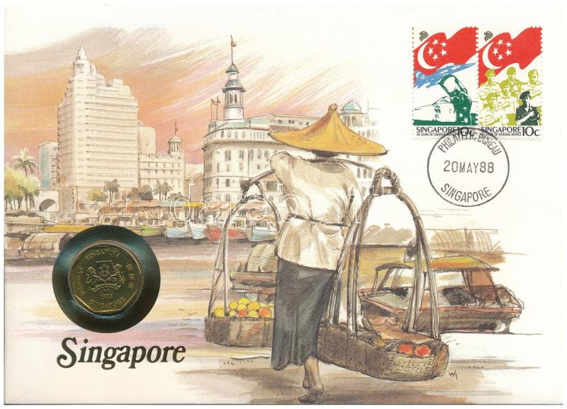 Szingapúr 1988. 1$ Al-Br felbélyegzett borítékban, bélyegzéssel, német nyelvű tájékoztatóval T:UNC
