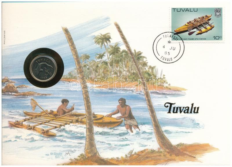 Tuvalu 1985. 5 Cents in envelope with stamp and cancellation, with German description C:UNC