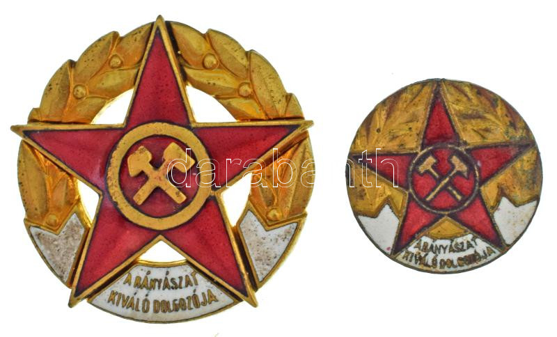 Leírás: DN (~1960) "A Bányászat Kiváló Dolgozója " aranyozott, műgyantás jelvény miniatűrrel (29mm ; 19mm) T:XF,VF