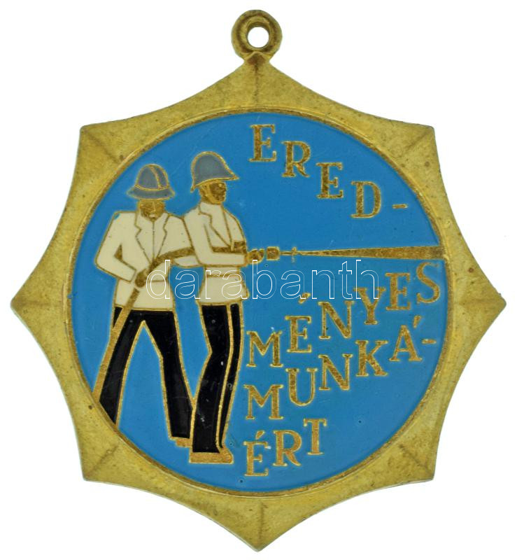 Leírás: DN (~1970) "Eredményes munkáért " műgyantás bronz tűzoltó jelvény (37mm) T:AU, a nemzetiszínű rátét hiányzik