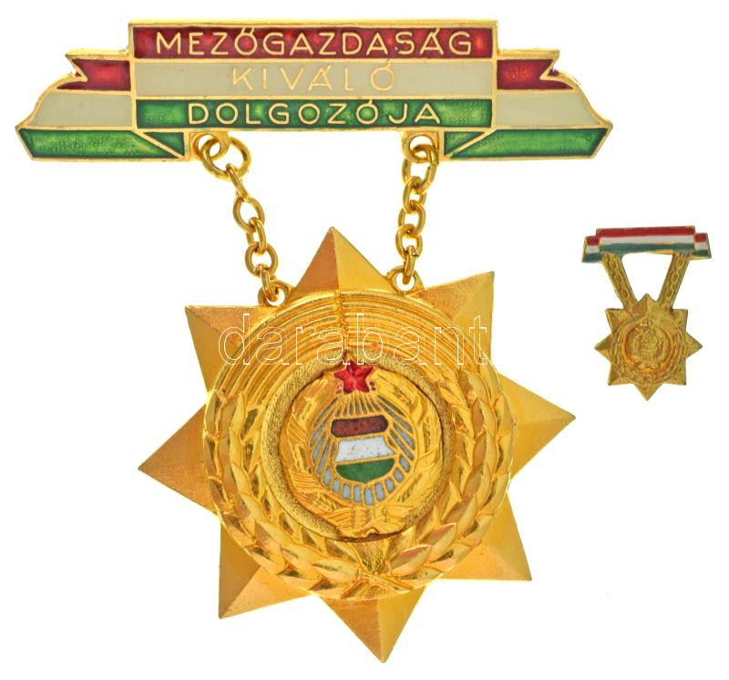 Leírás: DN(~1970-1980) "Mezőgazdaság Kiváló Dolgozója " aranyozott, műgyantás bronz kitüntetés miniatűrrel T:AU
