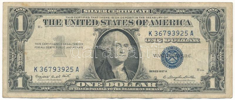 Amerikai Egyesült Államok 1961-1962. (1957A) 1$ "Silver Certificate - kisméretű", kék pecsét, "Elizabeth Rudel Smith - C. Douglas Dillon", "K 36793925A" T:F