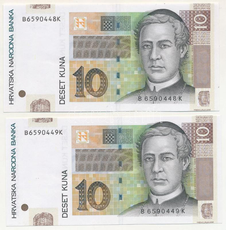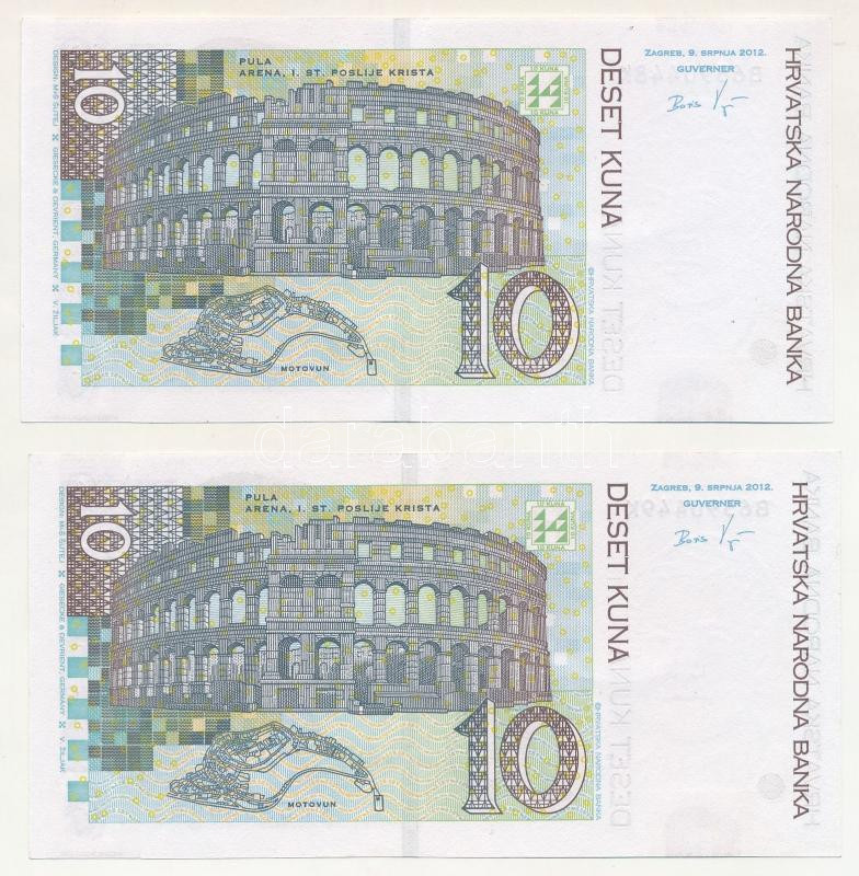Croatia 2012. 10 Kuna (2x) "B 6590448 K - B 6590449 K" C:F, szép papír