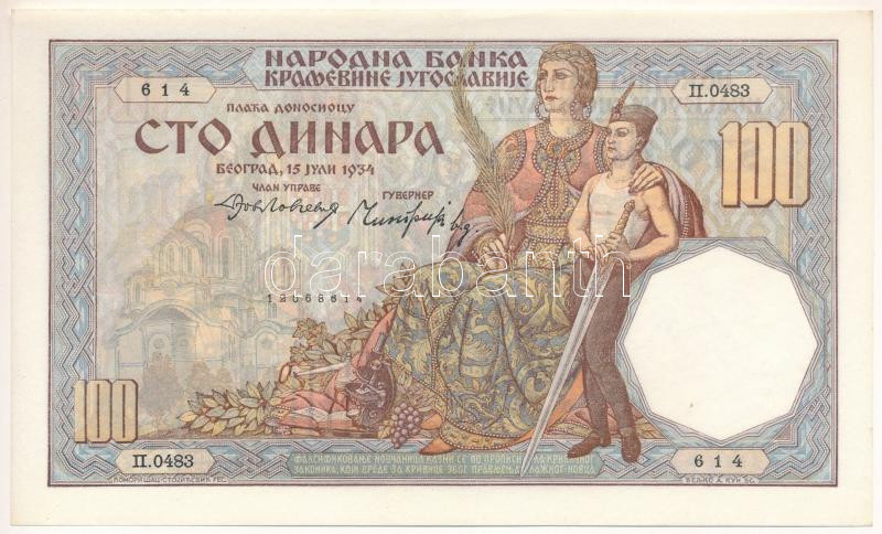 Yugoslavia 1934... https://www.darabanth.com/hu/510-Gyorsarveres/510.0/Numizmatika/Kulfoldi-bankjegyek~698/Jugoszlavia-1934-100D-II0483-614-TAU-3Cbr-3E-Yugoslavia-1934-100-Dinara-II0483-614-CAU3Cb~II3441670