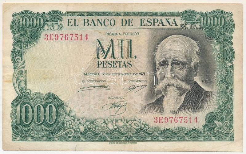Spanyolország 1971. 1000P T:VG ragasztott kis szakadás, hátoldalon kézírás