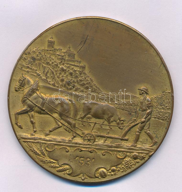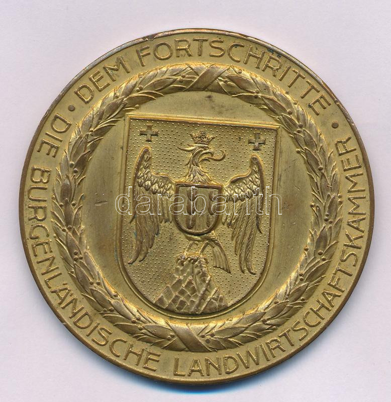 Ausztria 1931. "Dem fortschritte die burgenländische landwirtschaftskammer / 1931." kétoldalas, vert, aranyozott bronz emlékérem (56mm) T:F