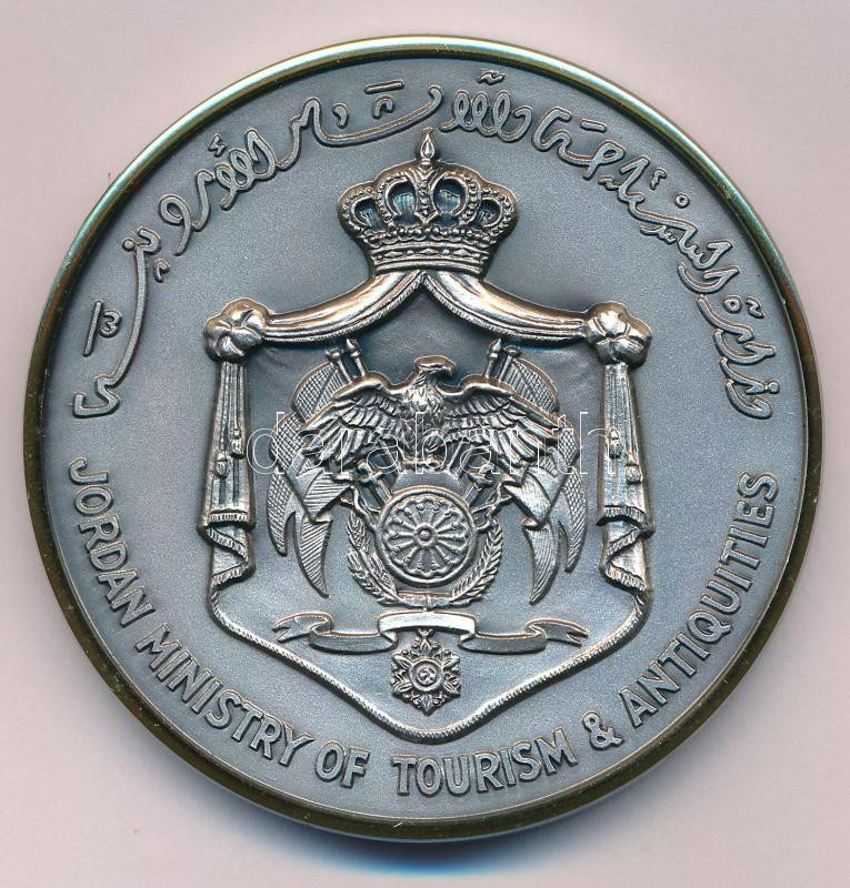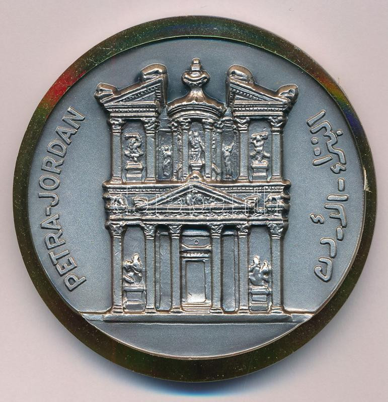 Jordánia 2000 k. "Jordan Ministry of Tourism and Antiquities / Petra, Jordan (Jordán Turisztikai és Régészeti Minisztérium / Petra, Jordánia)" ezüstpatinázott emlékérem aranyozott széllel (59mm) T:UNC