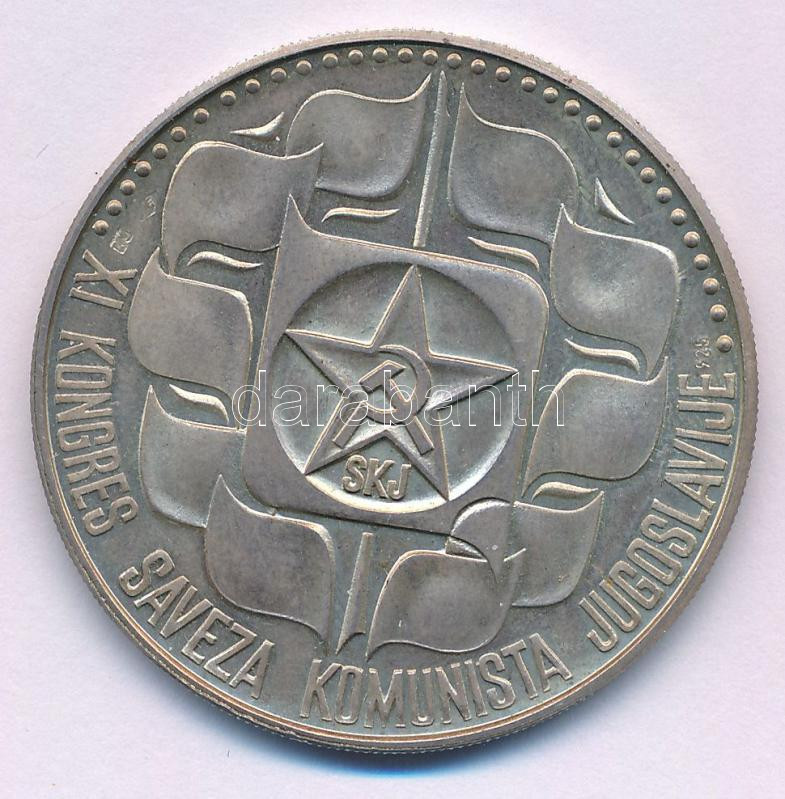 Jugoszlávia 1978. "XI. Kongres Saveza Komunista Jugoslavije (A Jugoszláv Kommunisták Szövetségének 11. kongresszusa)" kétoldalas, jelzett Ag emlékérem (16,96g/0.925/38mm) T:AU (eredetileg PP) patina, folt