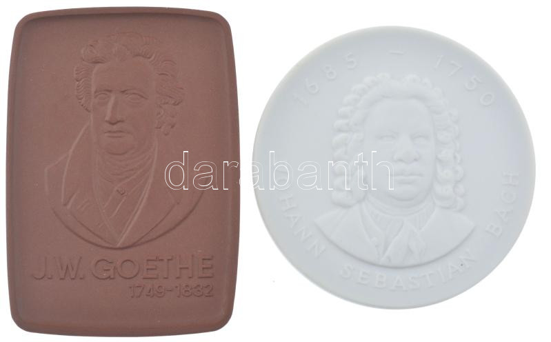 Leírás: Német Demokratikus Köztársaság DN "Johann Sebastian Bach" jelzett meisseni porcelán érem (51mm) + DN "J.W. Goethe" jelzett meisseni porcelán plakett (60x42mm) T:1 German Democratic Republic ND "Johann Sebastian Bach" hallmarked Meissen porcelain medallion (51mm) + ND "J.W. Goethe" hallmarked Meissen porcelain plaque (60x42mm) C:UNC
