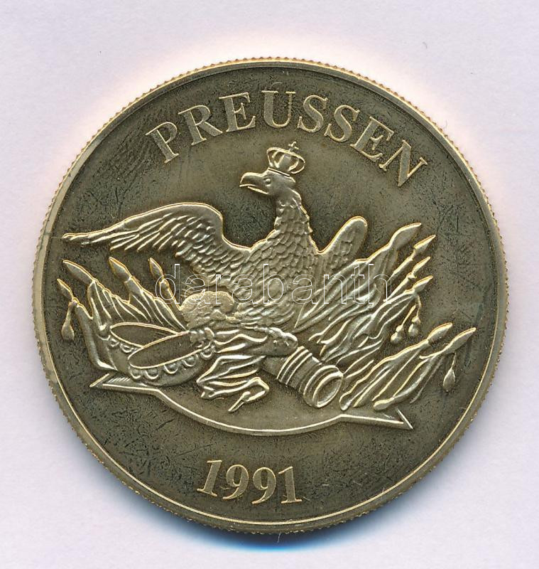 Leírás: Németország 1991. "Preussen 1991 / Nagy Frigyes - 1712?1786 - Hazatérés Sanssouci-ba " kétoldalas, aranyozott Cu-Ni emlékérem (40mm) T:AU