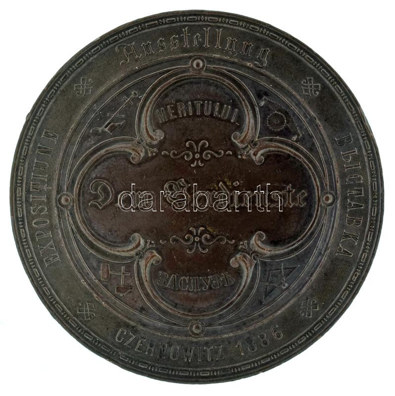 Leírás: Ukrajna / Csernovic 1886. "Csernovic Kiállítás Érdemérem " kétoldalas bronz emlékérem. Szign.: "Romstorfer" & "Schwerdtner" (50mm) T:XF, kis ph.