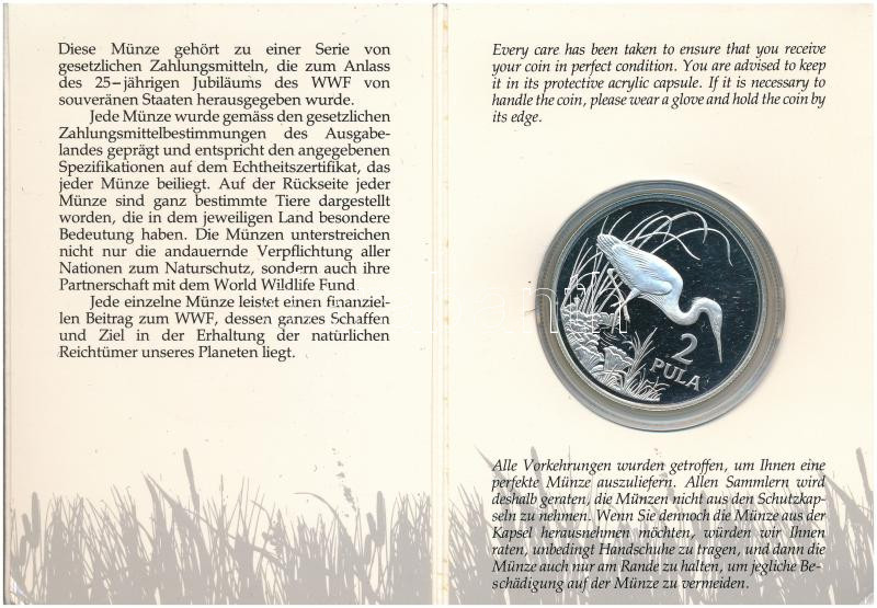 Botswana 1986. 2 Pula Ag "25th Anniversary of the World Wildlife Fund - Slaty Egret" commemorative issue in capsule, on cardboard, with a certificate in english and a description in german C:PP