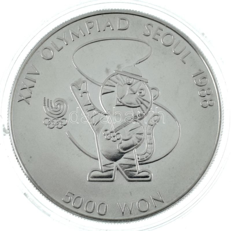 Dél-Korea 1986. 5000W Ag "1988 Olimpia - Tigris Kabala" kapszulában, tanúsítvánnyal, sérült dísztokban T:BU