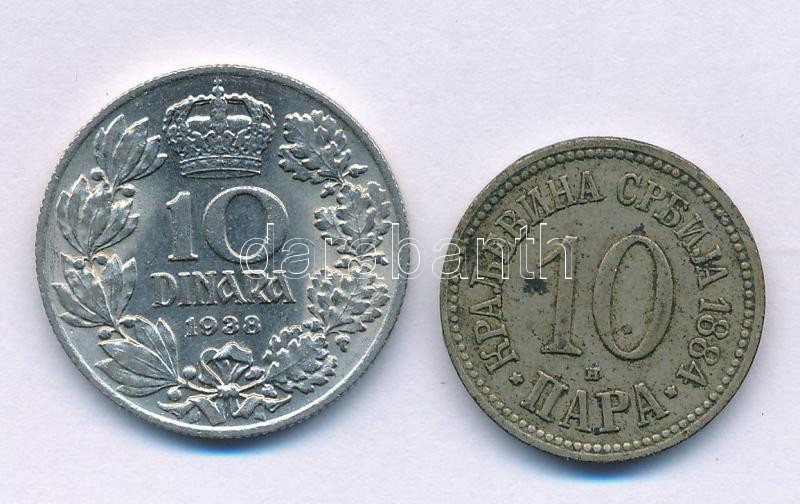 Leírás: Jugoszlávia 1938. 10D Ni "II. Péter" + Szerbia 1884. 10p Cu-Ni T:AU,XF patina
