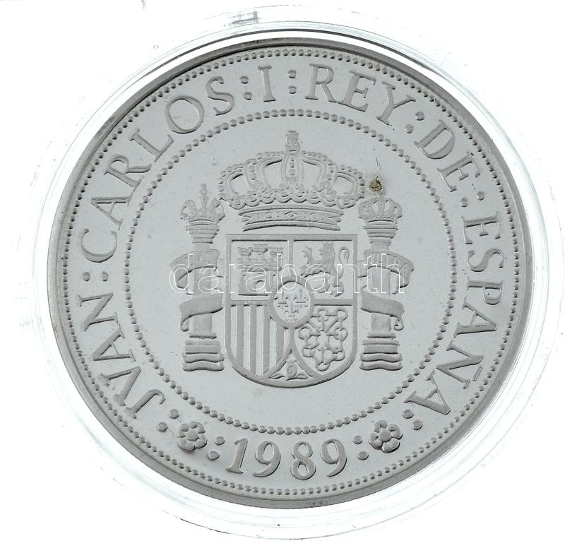 Spain 1989. 5000 Pesetas Ag "500th anniversary of the discovery of America - Spanish Caravel" with certificate, in capsule, in wooden case C:PP