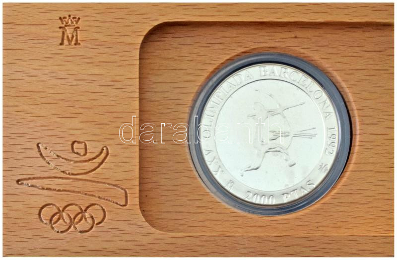 Spanyolország 1990. 2000P Ag "Nyári Olimpia 1992 Barcelona - Íjászat" fa dísztokban, tanúsítvánnyal T:BU
