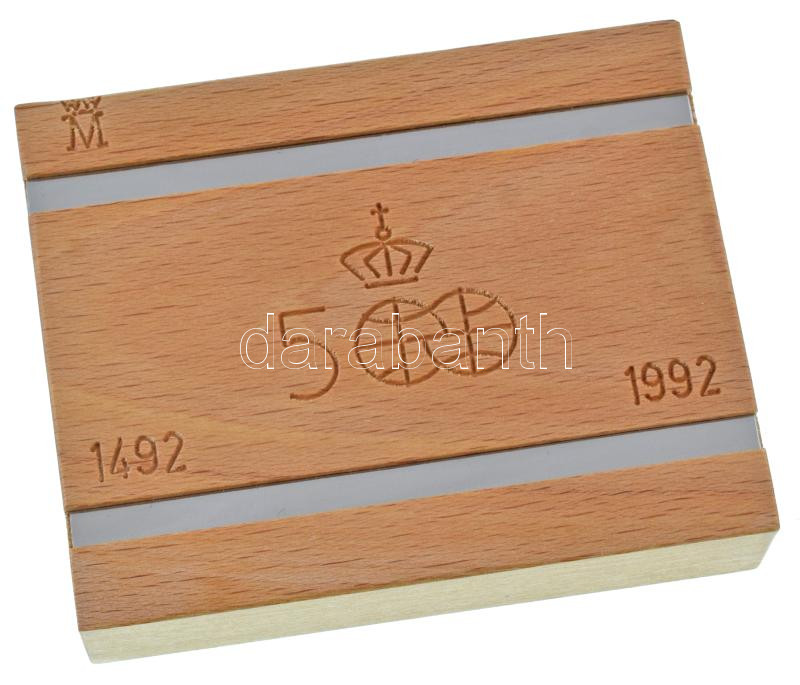 Leírás: Spanyolország 1990. 5000P Ag "Amerika felfedezésének 500. évfordulója - Moctezuma, Marina és Cortes " tanúsítvánnyal, kapszulában, fa dísztokban T:PP