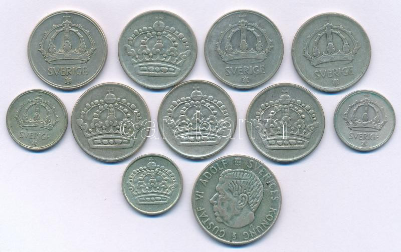 Sweden 1944-1958. 25 Öre billon - 1 Krone billon (3xdiff, 11pcs, all with different date- or value) C:VF
