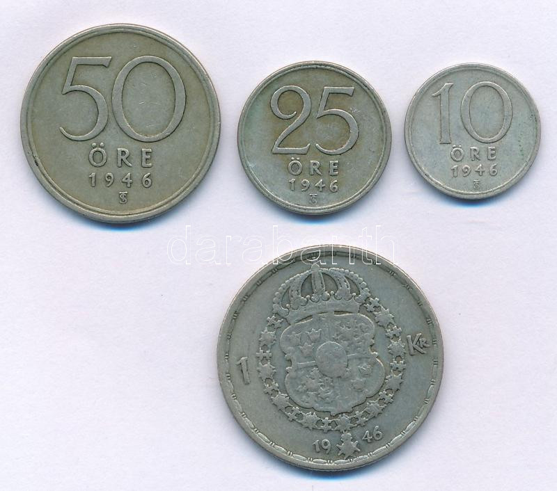Sweden 1946. 10 Öre billon - 1 Krone billon "Gustaf V" (4xdiff) C:XF,VF