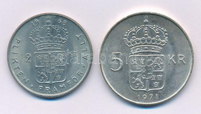 Leírás: Svédország 1968U 2K Cu-Ni + 1971U 5K billon "VI. Gusztáv Adolf " T:AU