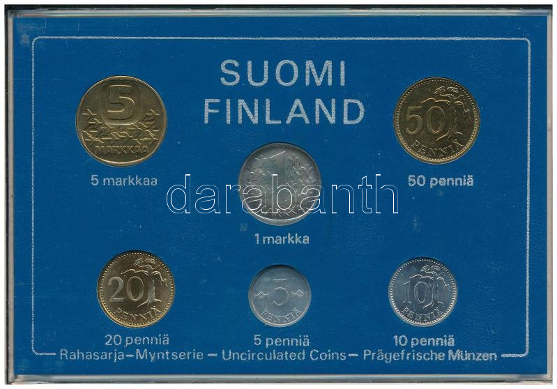 Finland 1983. 5 Pennia - 5 Markkaa (6xdiff) coin set in plastic case C:AU, small patina